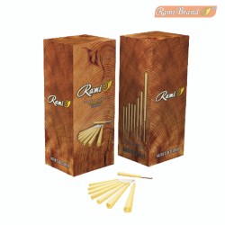 Los conos pre liados fabricados por Rami están hechos de papel ultra fino. La cola arábica tiene solo 0,5 mm de ancho, por lo que es insípido y se quema uniformemente.